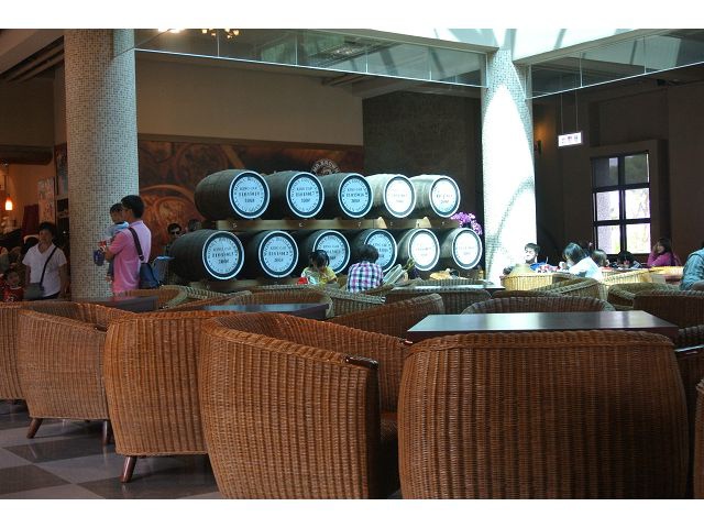 我們要跟斜後方的酒桶拍照啦!但好難抓角度!